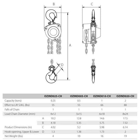 From$1,279.00Unit price /Unavailable0.25 Ton OZ Industrial Manual Chain Hoist